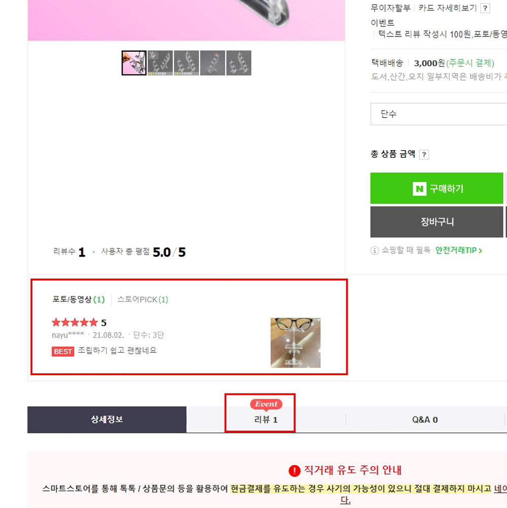 상세페이지 상단에 베스트리뷰가 자동으로 나타난 것을 볼 수 있습니다.