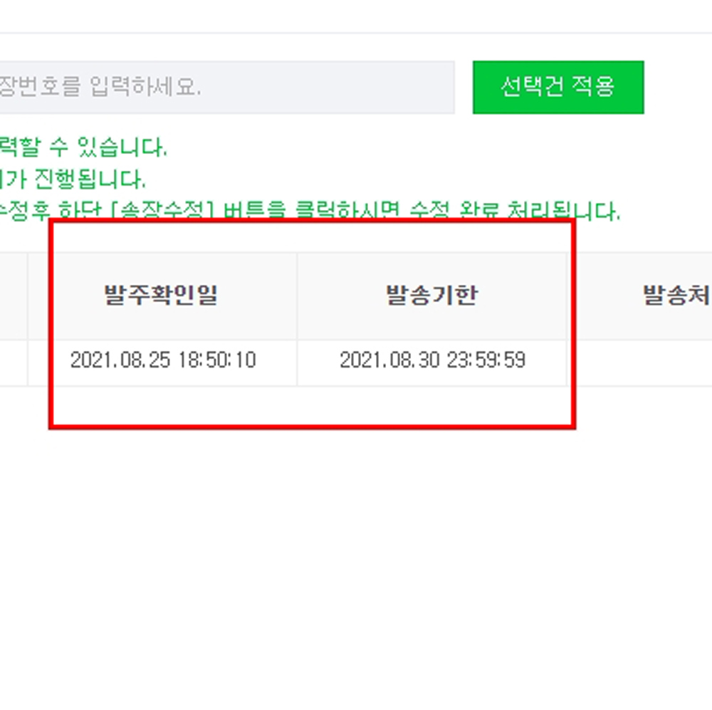 내가 "발주확인”버튼을 누른 시점부터 “발송기한”이 시작되는 게 아니라는 것이 지요.