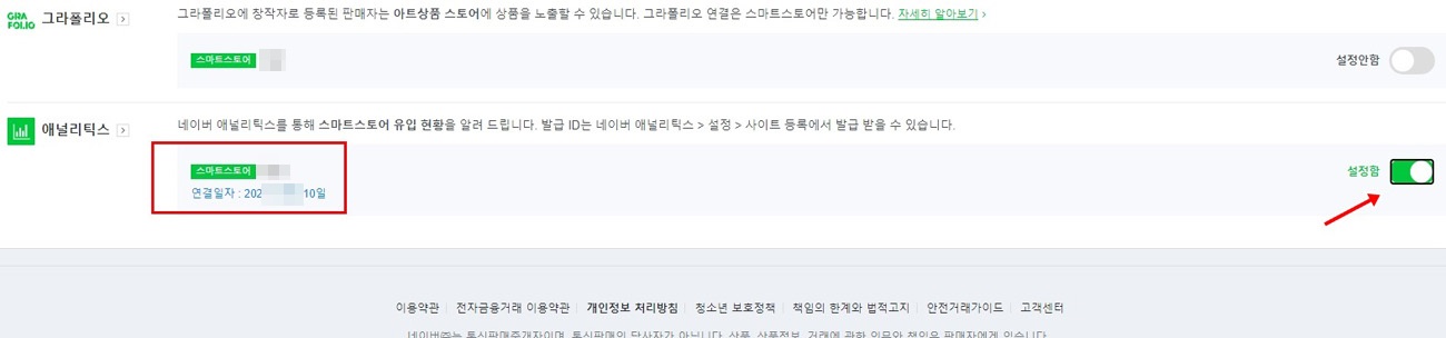 다시 스마트스토어 센터에 돌아와 연동버튼을 켜주고,