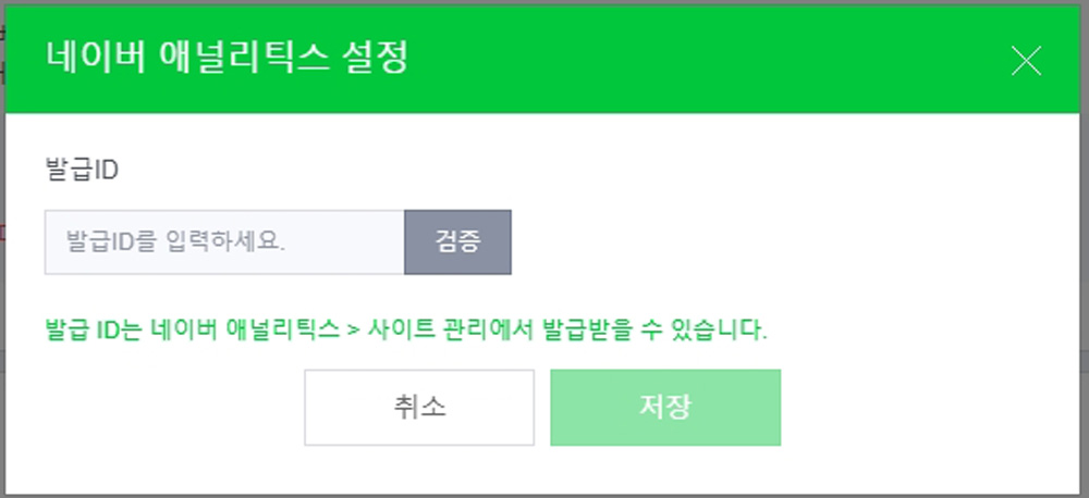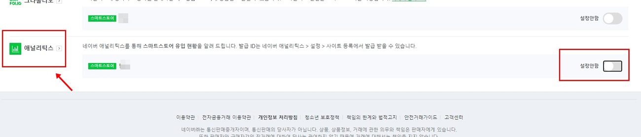 그런데 이 버튼을 켜려고 해보니 “네이버 애널리틱스 발급 ID”와 연동하라고 나옵니다.