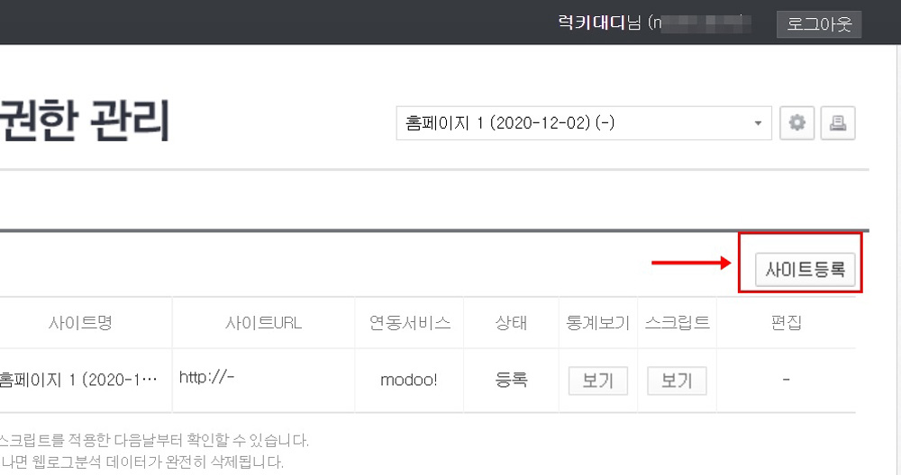 “네이버 애널리틱스”와 연동을 해주면 좋겠죠.
