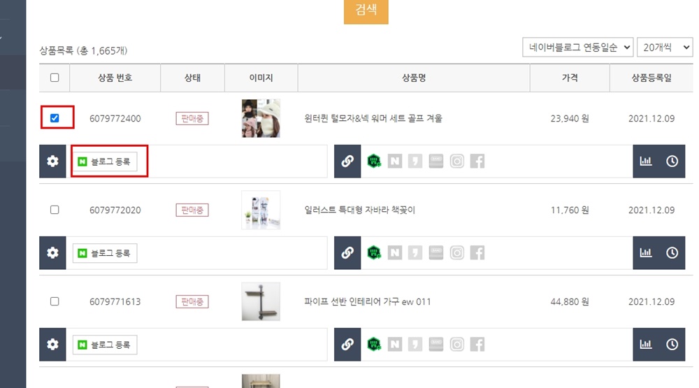 해당상품을 체크 후 [블로그등록]을 클릭해주세요.