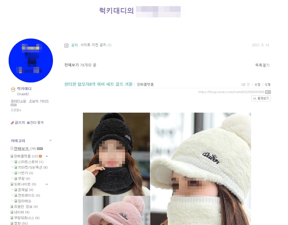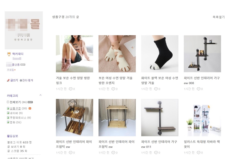 제 블로그에 접속해보니 금방 등록한 상품이 블로그에도 올려져있습니다.