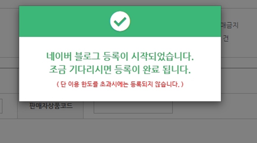 역시 체크박스 체크 후 [블로그 등록]을 클릭해주세요.
