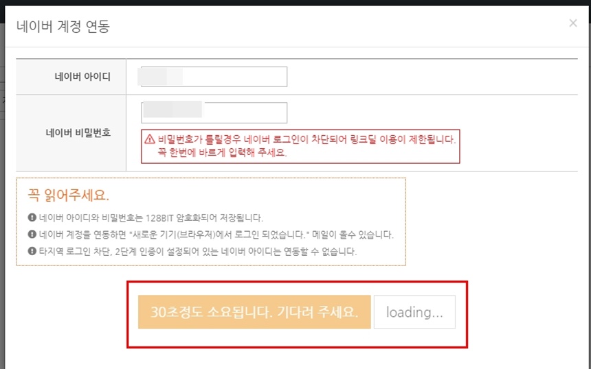 비밀번호가 틀릴경우 네이버 로그인이 차단되어 링크딜 이용이 제한됩니다.
