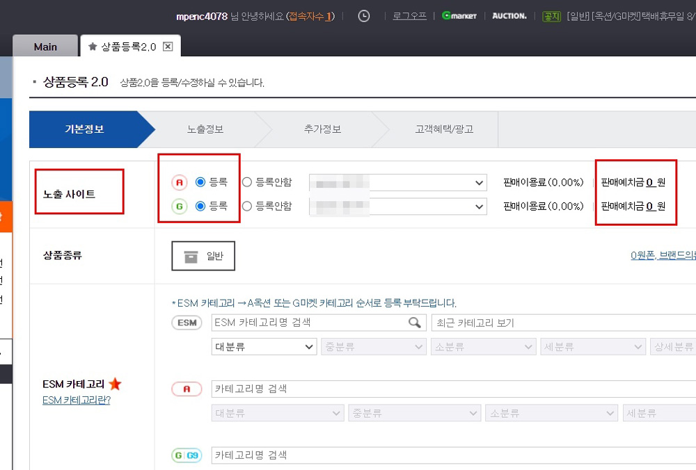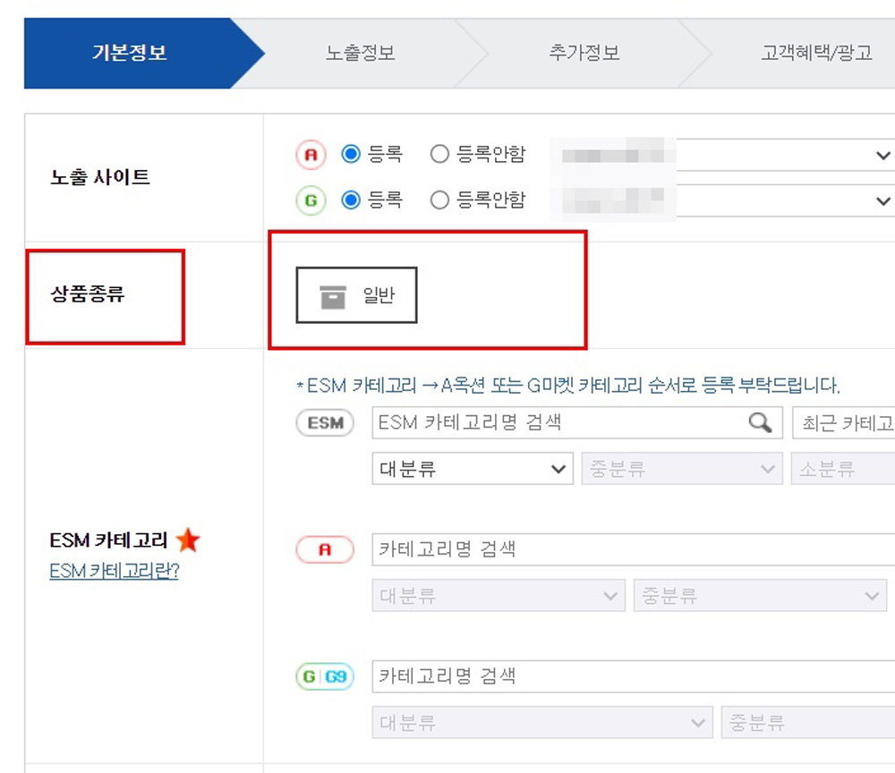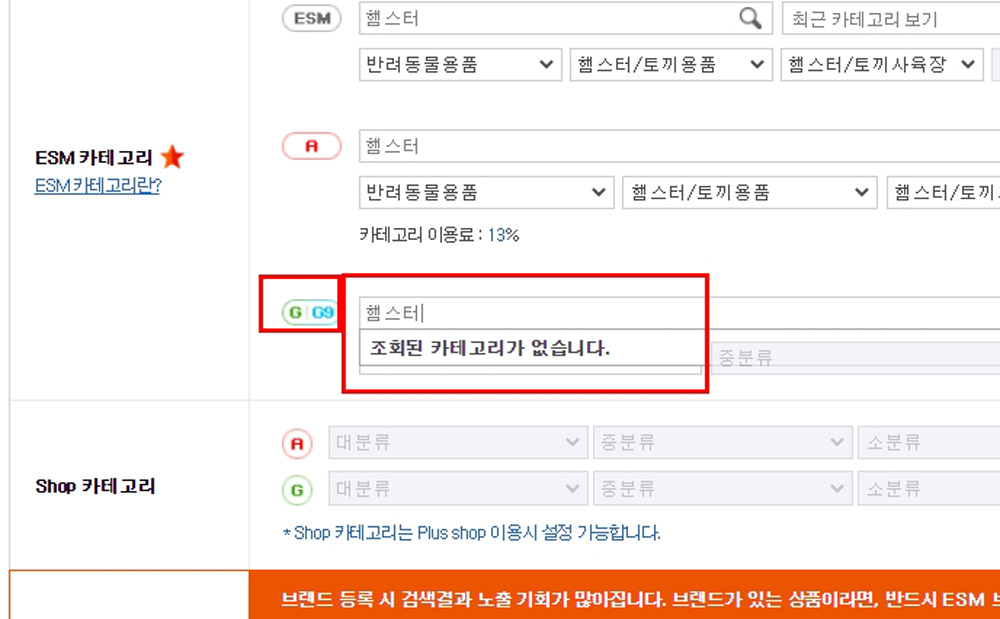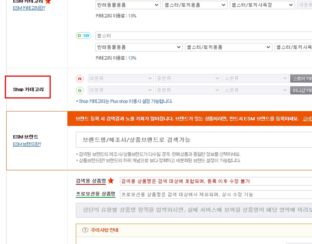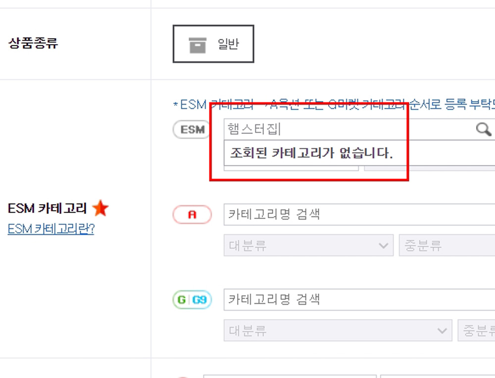 "ESM 카테고리"란 필수기재항목으로 수수료 책정의 기준이 됩니다.