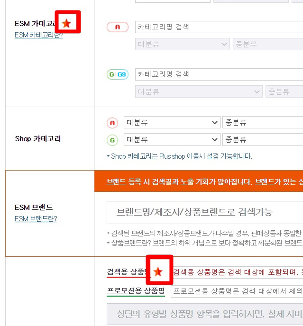 ESM브랜드는 별표가 없는 필수 입력항목이 아닙니다.