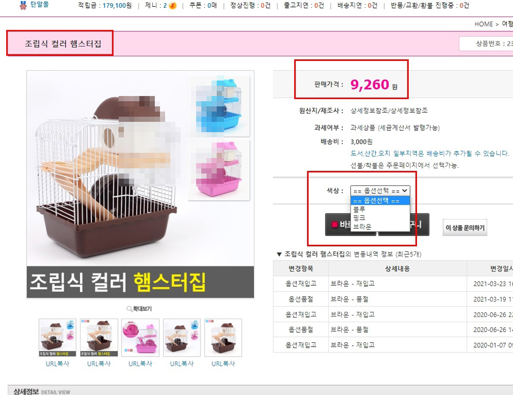 제가 예시로 등록할 상품은 “조립식 컬러 햄스터집”라는 것을 등록해볼게요.