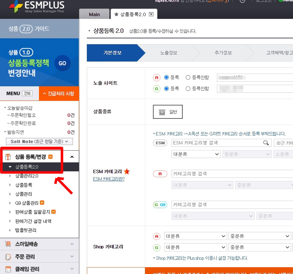 "상품등록"과 "상품등록 2.0"이 있는데 2.0버전으로 등록하셔야 노출에 더 많은 점수가 주어집니다.