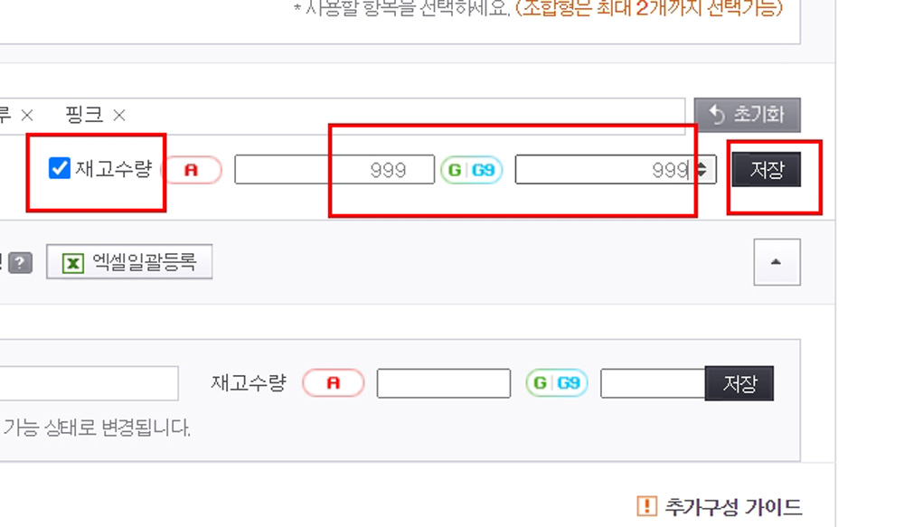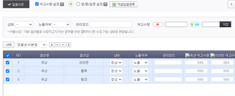 옥션과 지마켓 따로 재고를 지정할 수도 있습니다.