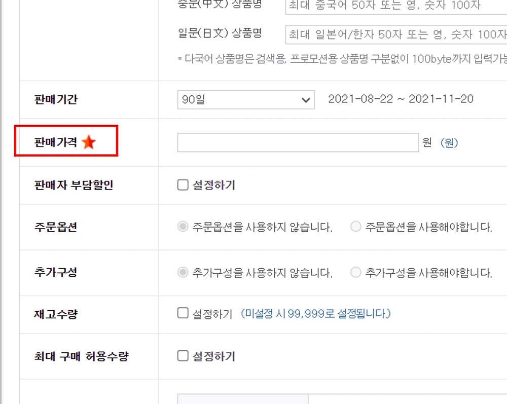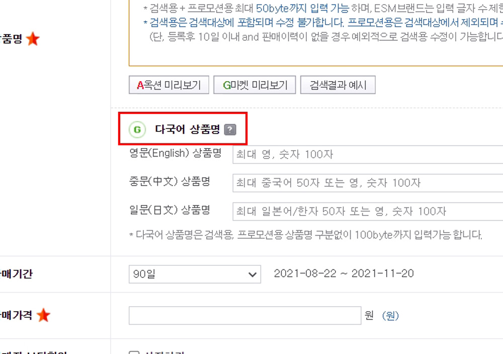 다국어 상품명은 외국인 고객의 구매 편의를 위하여, 영/중/일문 상품명을 입력 할 수 있습니다.