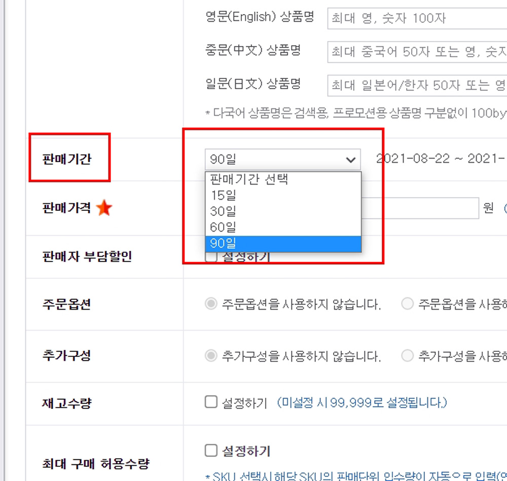 즉, 90일 동안 이 상품을 옥션과 지마켓에서 판매를 할 수 있으며 90일이 지나면 이 상품을 이 마켓에서는 판매를 할 수 없습니다.