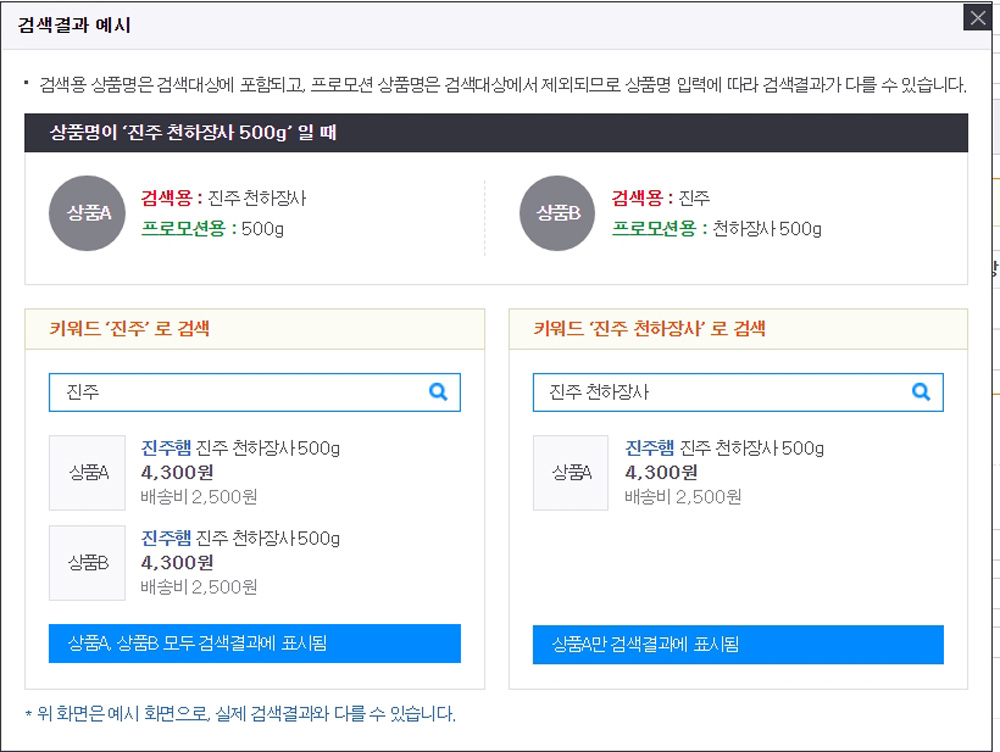 상품명은 “검색용 상품명”과 “프로모션용 상품명”으로 나뉩니다.