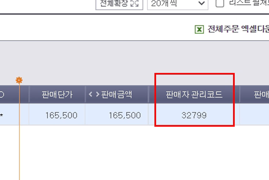 우측으로 슬라이더를 밀어 판매자관리코드를 보니 도매처가 “3MRO”코드인 것이 나타납니다.