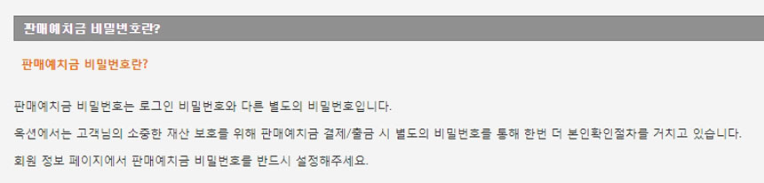 판매예치금 비밀번호는 로그인 비번과 다르게 설정해주세요.