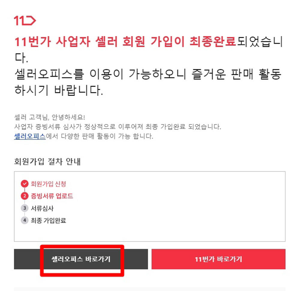 11번가는 팩스로 서류를 보낼필요가 없고 승인이 빨라 금방 완료되었어요.
