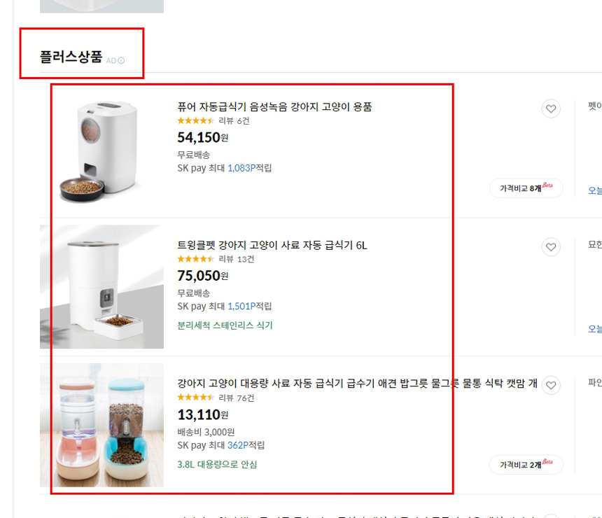 그 중에 [플러스상품]에 등록된 상위 셀러 3명의 상품에 클릭해서 들어가 보세요.