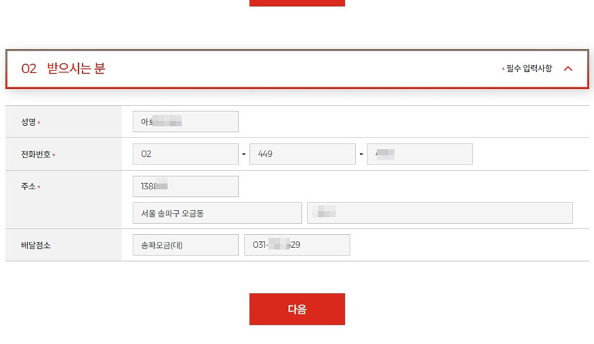 [받으시는 분]정보는 자동으로 나타납니다.