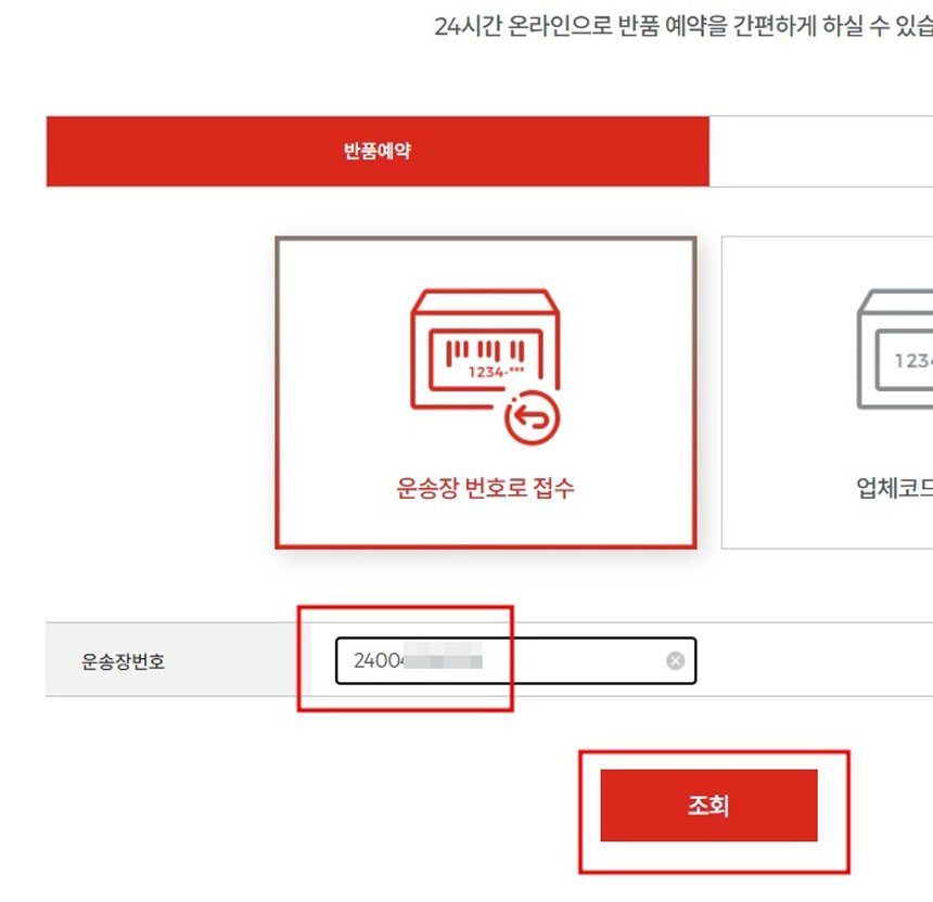 원송장번호를 입력 후 [조회]를 클릭해주세요.