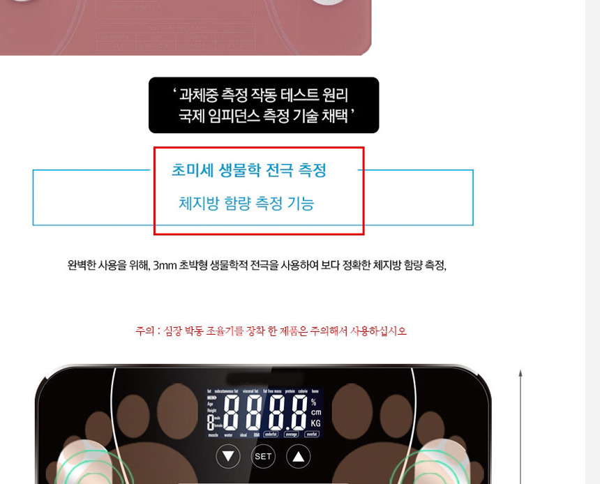 해당 상세페이지에 “체지방 측정 가능”으로 나와 있어요.