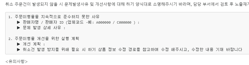 이 점 참고 하셔서 취소가 발생하지 않도록 관리해주시기 바랍니다.“ 라는 내용입니다.