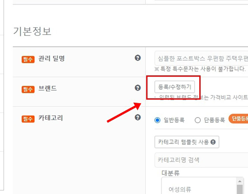 자신이 등록하고자하는 상품에 맞는 카테고리가 나옵니다.