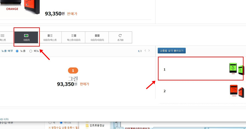 즉, 저는 옵션이 그린과 오렌지 두 개였는데, 두 개의 옵션이미지를 다른 것으로 넣어도 되고,