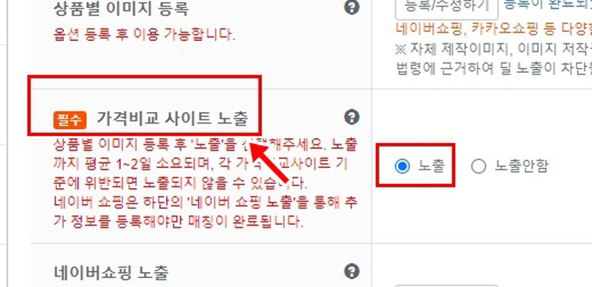 필수항목은 아니지만 네이버쇼핑에 노출이 되게 하려면