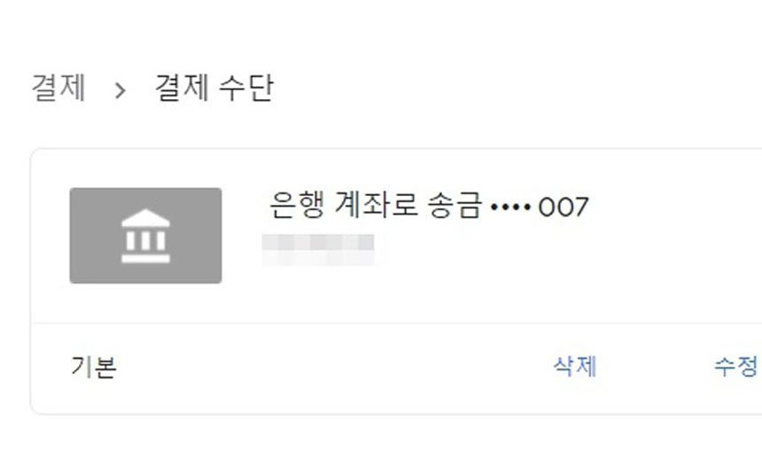 여기서 입력한 예금주 이름과 자신의 구글계정 이름과 동일해야합니다.