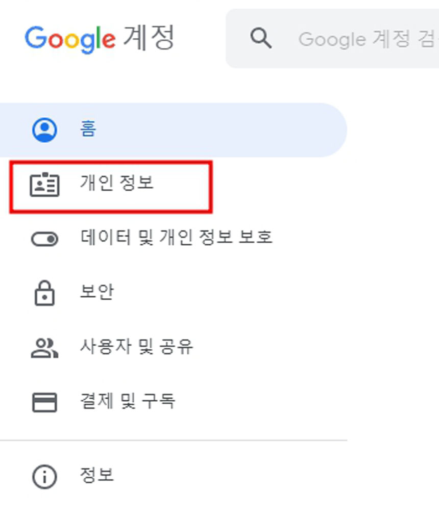 [개인정보]를 클릭해주세요.