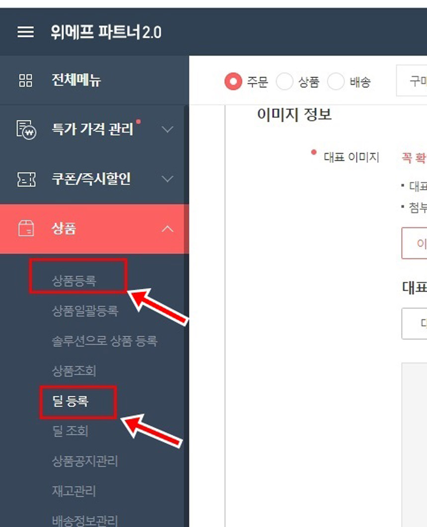 위메프와 티몬 같은 MD몰은 상품등록과, 딜등록으로 나뉩니다.