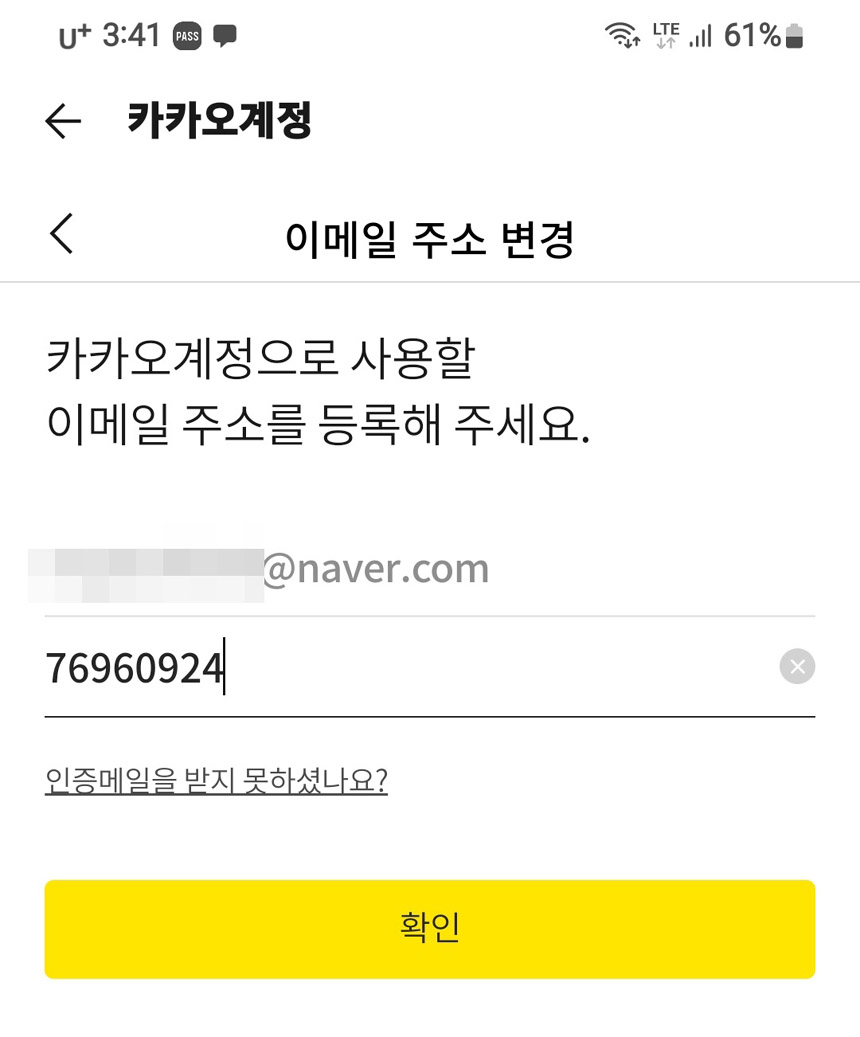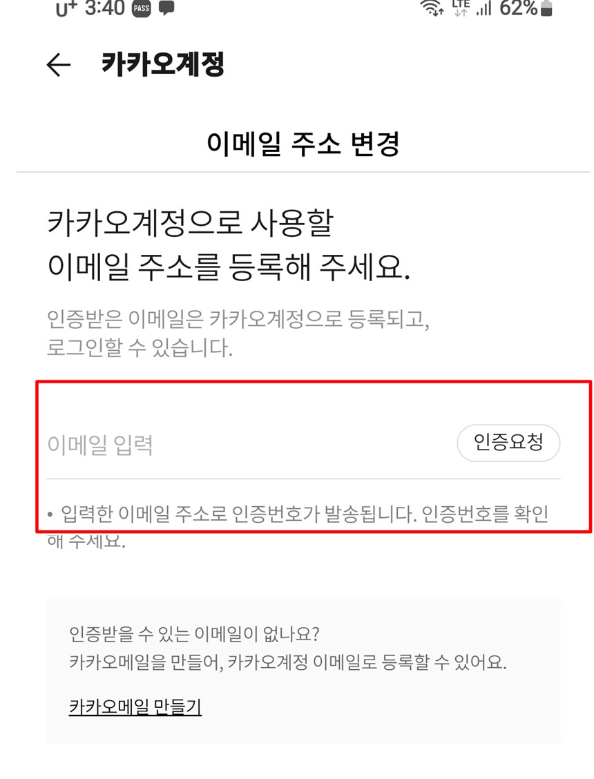 현재 사용중인 이메일로 카카오계정을 변경해볼게요.