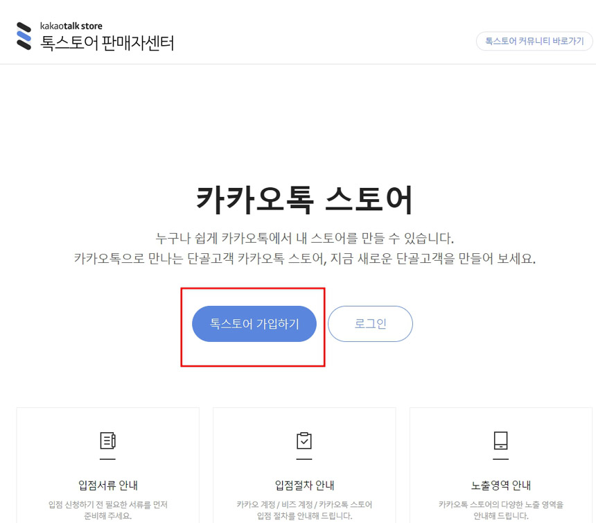 [톡스토어 가입하기]를 클릭해주세요.